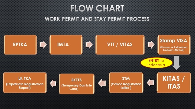 To make it easier to understand the work permits & stay permits process and what kind of documents that you need when you would like to work & stay in Indonesia, here is the flow chart of work permits and stay permits process:
